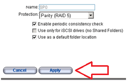 Next I choose the Edit icon on SP2_NFS, selected the drives I wanted, choose RAID 5, and pressed apply.