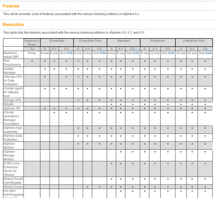 Ever want to compare a full list of the vSphere features to the associated licensing level?