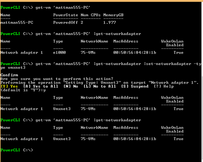 In this blog, I wanted to document some simple PowerCLI commands I did to change a VMs network adapter from e1000 to VMXNET3.