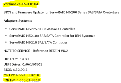 Solution: When you are looking at the boot screen you are seeing the FW Package number not the Firmware of your controller. Simply look at the release notes for the ‘FW Package’ and you’ll find the correct MR FW versions that match the vSAN HCL.