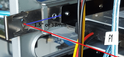 200GB SSD: The Sonata cases I am using are a bit dated but they fully meet my needs so there is no need to replace them. There are 4 x 3.5″ bottom mount disk trays in each case. Bottom mount means you insert your 3.5″ drive into the tray and bolt it to the tray from the bottom. I bought several 3.5″ to 2.5″ converters which will allow me to mount my 2.5″ SSDs. However, the converters didn’t have bottom mount holes that lined up with the standard 3.5″ holes. Fix — I used a hole in the existing tray to secure the converter to the tray. I also made sure I mounted the converter as far back as I could to ensure the SAS cables would not be on the side of the case. This mount position moved the drives back about 1.5″(38mm). The red line in the PIC show where the original mount point was.