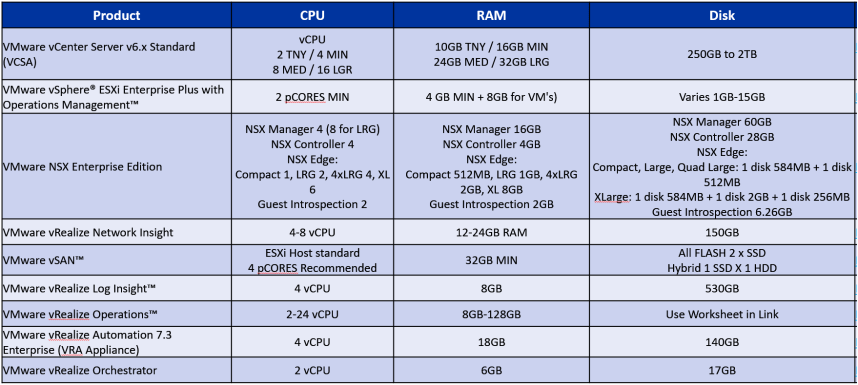 • Have enough CPU cores and RAM to be able to support multiple VMware products (ESXi, VCSA, vSAN, vRO, vRA, NSX, LogInsight)