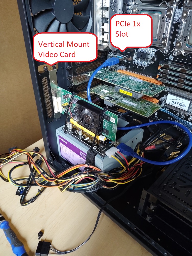 • Video Riser: PCI-E 1x to 16x Riser Adapter (Amazon $4)