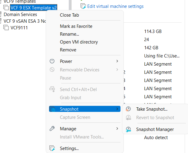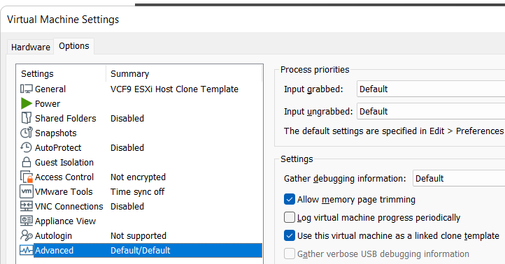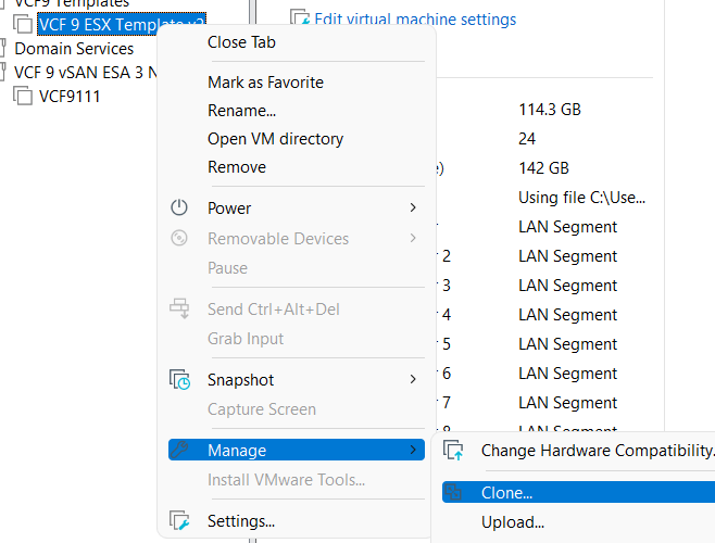 Workstation templates are a quick and easy way to create VMs with common settings. My nested VCF 9 ESX Hosts have some commonalities where they could benefit from template deployments. In this blog post I’ll show you how I use Workstation templates to quickly deploy these hosts and the hardware layout.