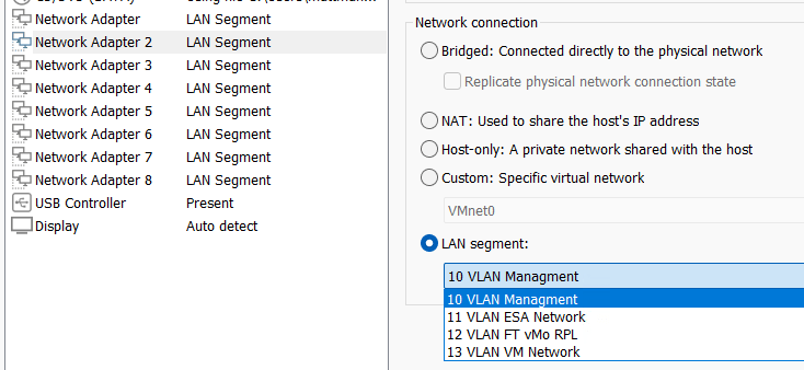 - Go back in to VM Settings and align your Network adapters to your LAN Segments