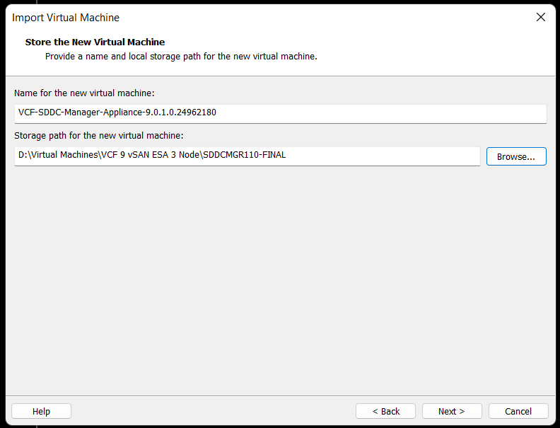 The installer takes up a massive 400+ GB of disk space, 16GB of RAM, and 4 vCPUs. The current configuration of my ESX hosts don’t have a datastore large enough to deploy it to, plus vSAN is not set up. To overcome this issue I’ll need to deploy it as a Workstation VM and attach it to the correct LAN Segment.
