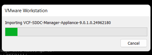 The VCF Installer (aka SDDC Manager Appliance) is the appliance that will allow me to deploy VCF on to my newly created ESX hosts. The VCF Installer can be deployed on to a ESX Host or directly on Workstation. There are a couple of challenges with this deployment in my Home lab and in this blog post I’ll cover how I overcame this. It should be noted, the modifications below are strictly for my home lab use.