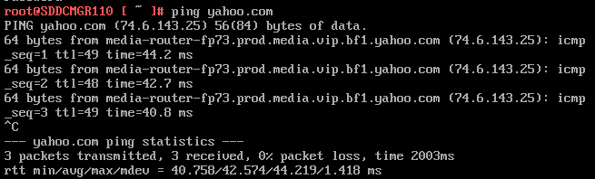 Next I do a ping to an internet location to confirm this appliance can route to the internet.