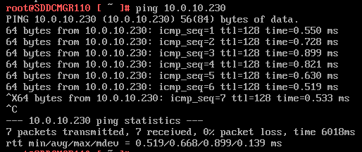 7) Do a ping test from the VCF Installer appliance and try an SSH session from another device on the same vlan. In my case I pinged 10.0.10.230.