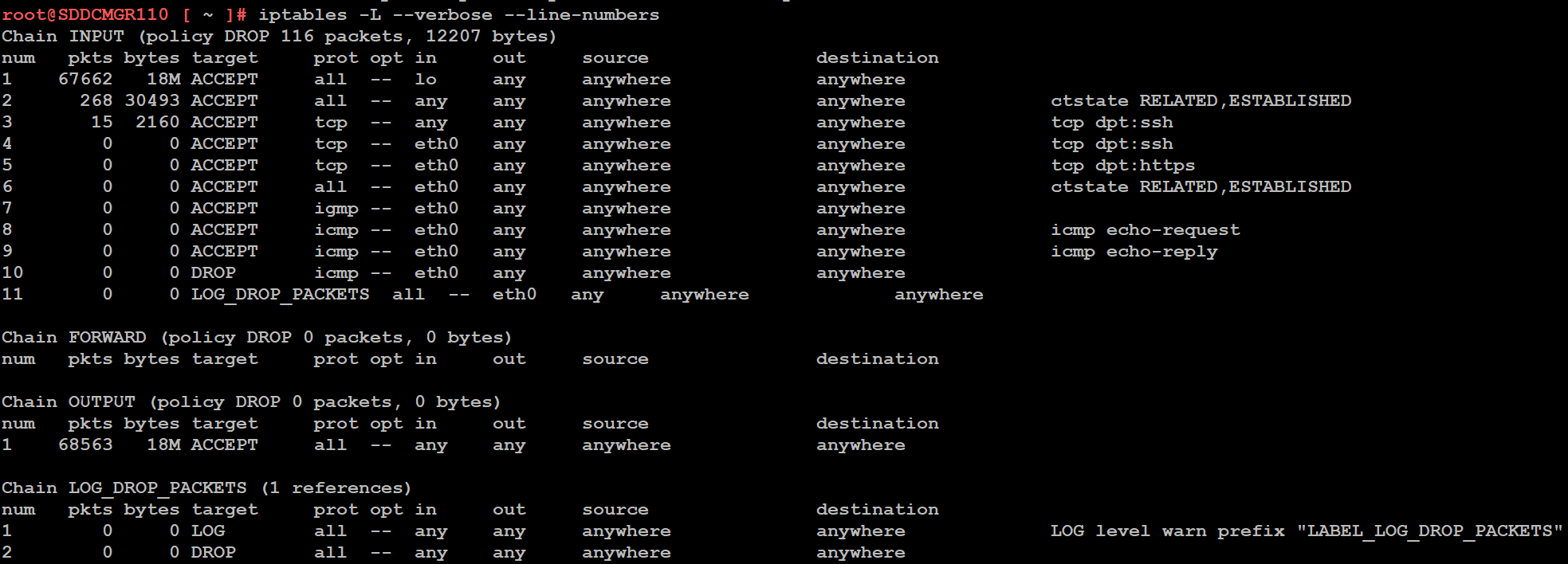 1) From SSH check the firewall rules for the VCF Installer with the following command.