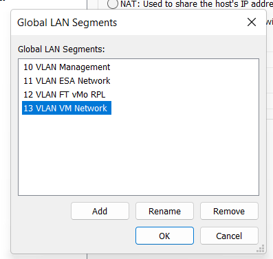 One at a time I add in each of my VMs and ensure their LAN Segments are aligned properly.