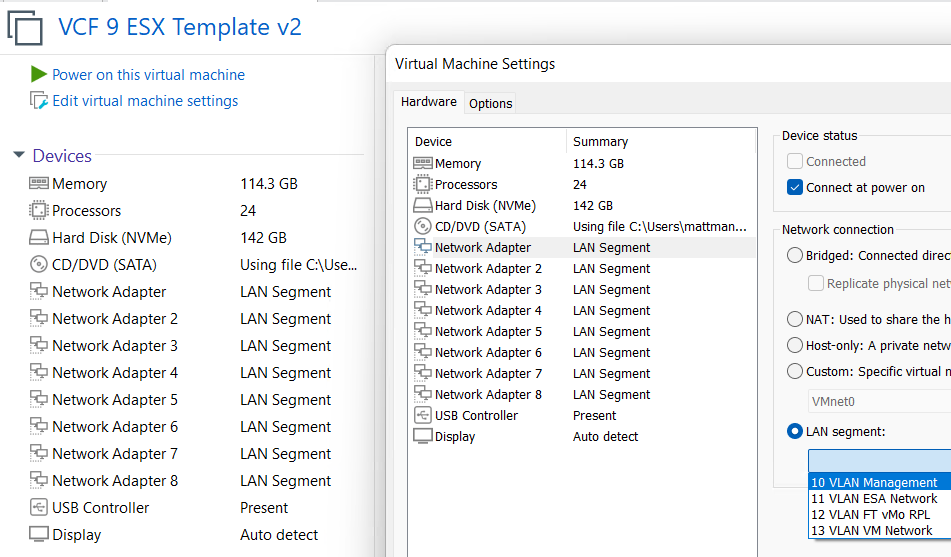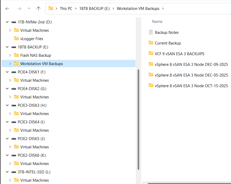 This is what I love about Workstation, I was able to recover my entire VCF 9 environment and move it to a new system quite quickly. In my next post I’ll cover how I set up Windows 11 for better performance.