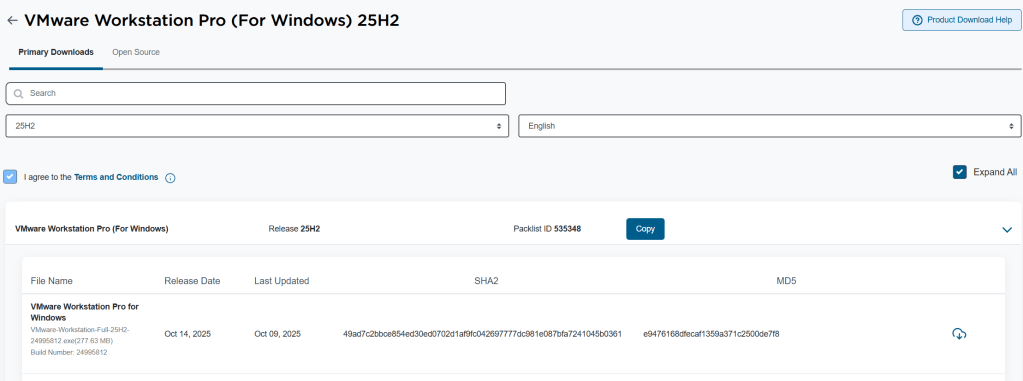 Once confirmed I install Workstation 25. For more information on how to install Workstation 25H2 see my blog.