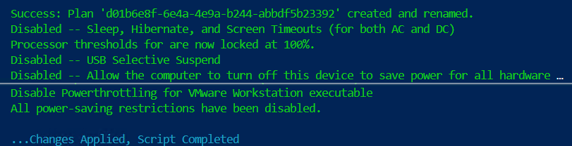 powercfg -changename $cleanGuid "VMware Workstation Performance Plan"