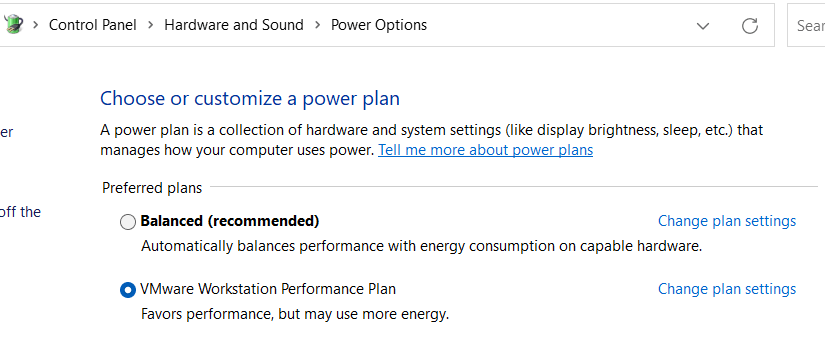 Typically by default Windows 11 has the “Balanced” Power plan enabled. Though these settings are good for normal use cases, using your system as a dedicated VMware Workstation requires a better plan. Below I show how to use a script to create a custom plan or manually make similar adjustments.