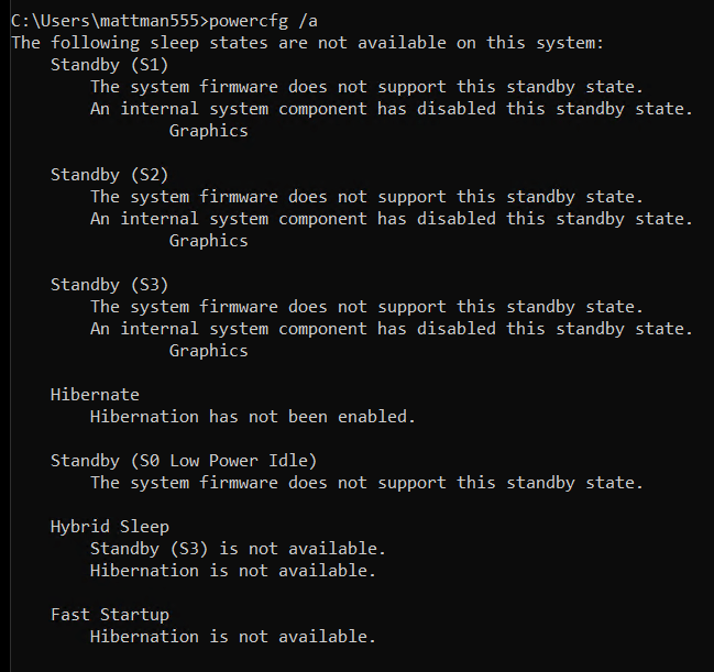 To check if any are from a command prompt type in ‘powercfg /a’ and adjust as needed.