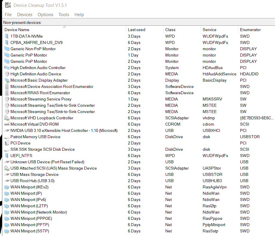 Here is Device Cleanup Tool running on my newly (<2 months) installed system. As you can see unused devices can build up even after a short time frame.