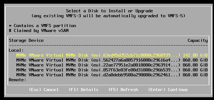 | PRE-STEP: – Power on my Workstation server and start Workstation. – In Workstation power on my AD230 VM and ensure / verify all the core services (AD, DNS, NTP, and RAS) are working okay. Start up the VCF Cluster: 1 – One at a time power on each ESX Host. – vCenter is started automatically. Wait until vCenter is running and the vSphere Client is available again. – Log in to vCenter at https://vcsa234.nested.local/ui as a user with the Administrator role. – Restart the vSAN cluster. In the Hosts and Clusters inventory, right-click the vSAN cluster and select vSAN Restart cluster. – In the Restart Cluster dialog box, click Restart. – Choose the vSAN cluster > Configure > vSAN > Services to see he vSAN Services page. This will display information about the restart process. – After the cluster has been restarted, check the vSAN health service and resynchronization status, and resolve any outstanding issues. Select the cluster and click the Monitor tab. – In the left pane, under vSAN > Resyncing objects, verify that all synchronization tasks are complete. – In the left pane, navigate to vSAN Skyline health and verify the status of each vSAN health check category. | Start vSAN and the ESX Hosts in the Management DomainStart ESX Hosts with NFS or Fibre Channel Storage in the Management Domain |