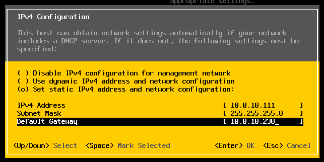 Filled out the network information based on our VLAN plan.