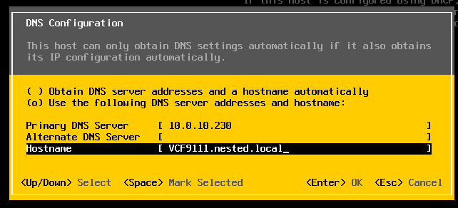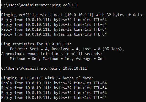 4) I didn’t setup all of DNS names ahead of time, I prefer to do it as I’m going through the VCF installer. However, I test all my current DNS settings, and test the newly entered ones as I go.