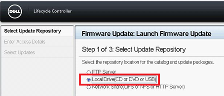 Launch the Lifecycle Controller during boot time then choose Firmware Update >> Launch Firmware Update