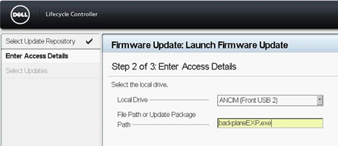 To update the Backplane Expander and Non-Backplane Expander you will need to boot the server into the Lifecycle Controller at boot time. Then I choose to use a USB key to update the firmware.