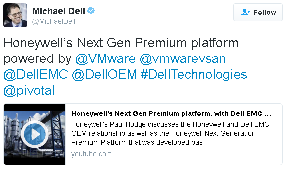 Just before VMworld 2017 Michael Dell tweeted about the great work we had all accomplished and released a video.
