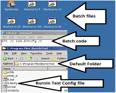 Writing the batch file to launch the BurnIn Test config file was simple (see below) and I created one for each duty cycle.