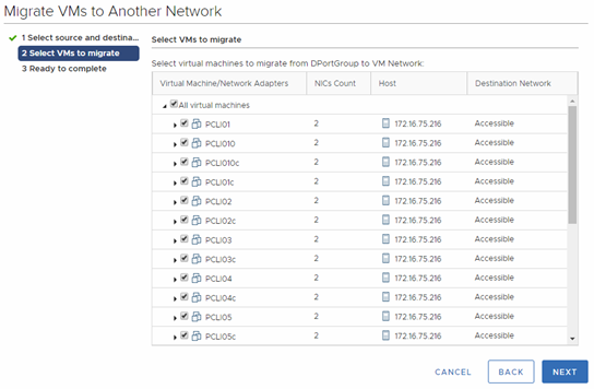 Note: If I wanted to migrate an individual vNIC vs all, I could have expanded each VM and then choose which network adapter I wanted to migrate.