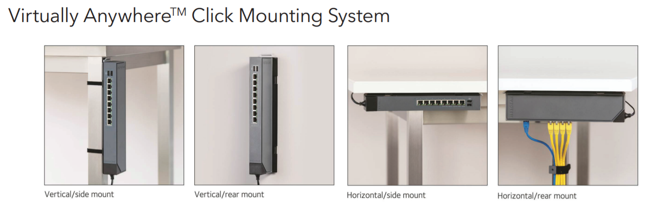 Looking for a partially managed Home or SMB network switch? Then consider the GSS116e by Netgear. I enjoyed working with its simple web interface and immediately found value the simple to setup VLANs. One of the great selling features is the many ways it can be easily mounted, including under things!