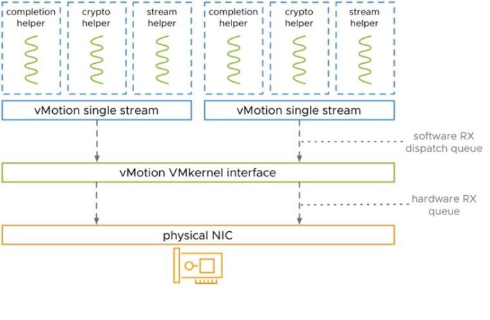 | New in vSphere 7 Update 2 is that vMotion is able to fully benefit from high-speed bandwidth NICs for even faster live-migrations. Manual tuning is no longer required as it was in previous vSphere versions, to achieve the same.