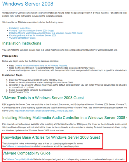 Here are the base install instructions for the Guest OS, note at the bottom the KB Articles and Guest OS Compatibility Guide.