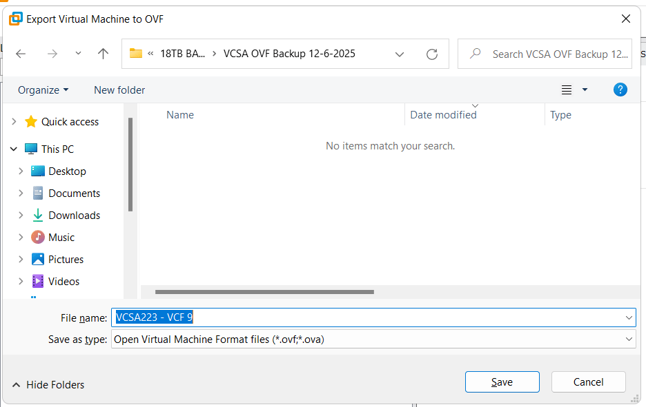 In Workstation I choose the VCSA appliance then choose File > Export to OVF