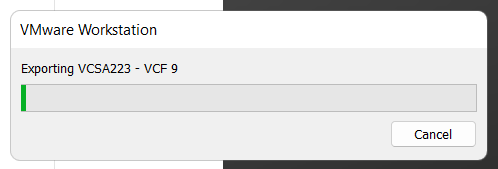 Workstation creates the OVF files and displays a progress bar. Depending on the size this could take some time to complete.