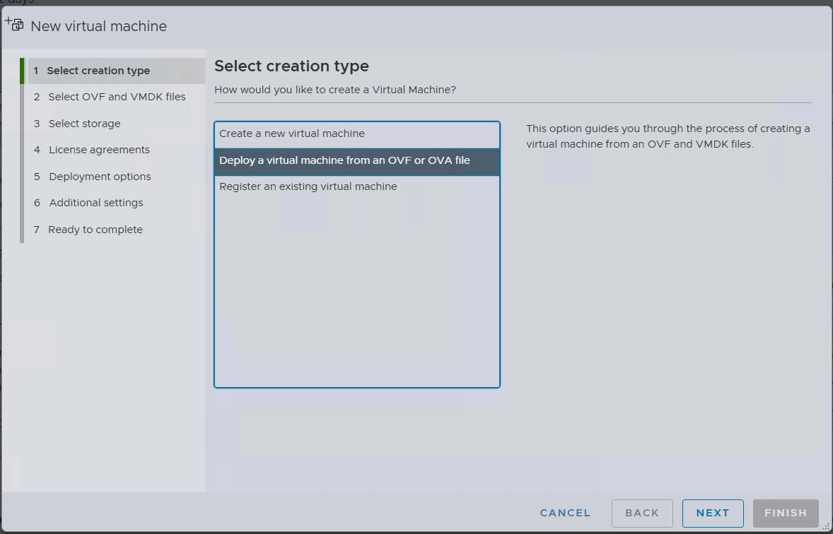 Choose ‘Deploy a virtual machine from an OVF or OVA file’ then Next.