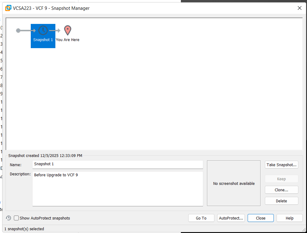 With the VM’s powered off, I remove any Workstation snapshots on the VCSA 8 Appliance and all 3 vSAN ESXi Hosts.