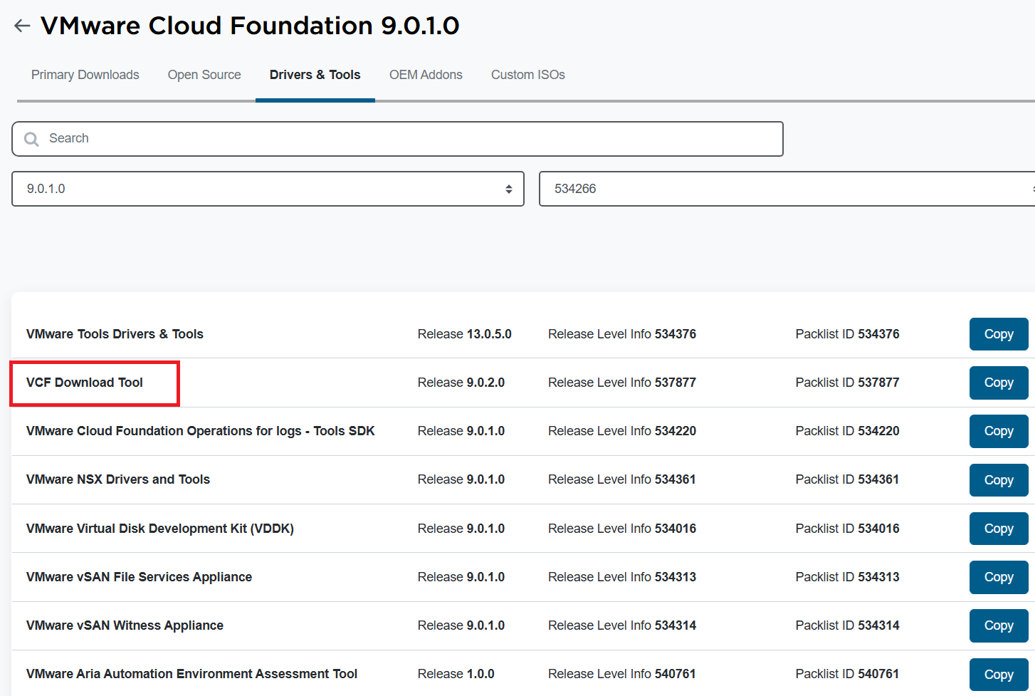 Go to support.broadcom.com > My Downloads > VMware > Search for Cloud Foundation. Find your version of Cloud foundation and then click on ‘Drivers and Tools’